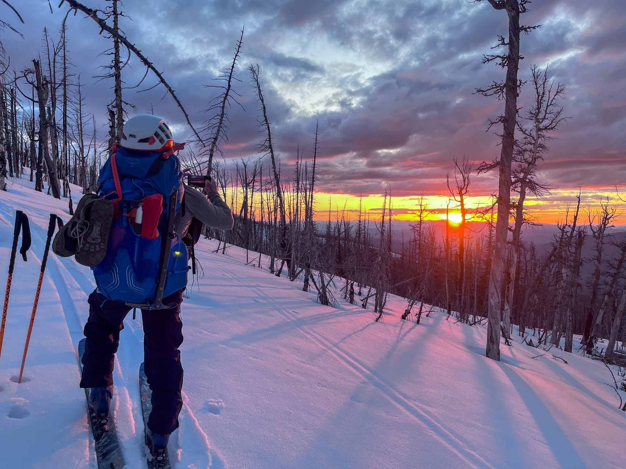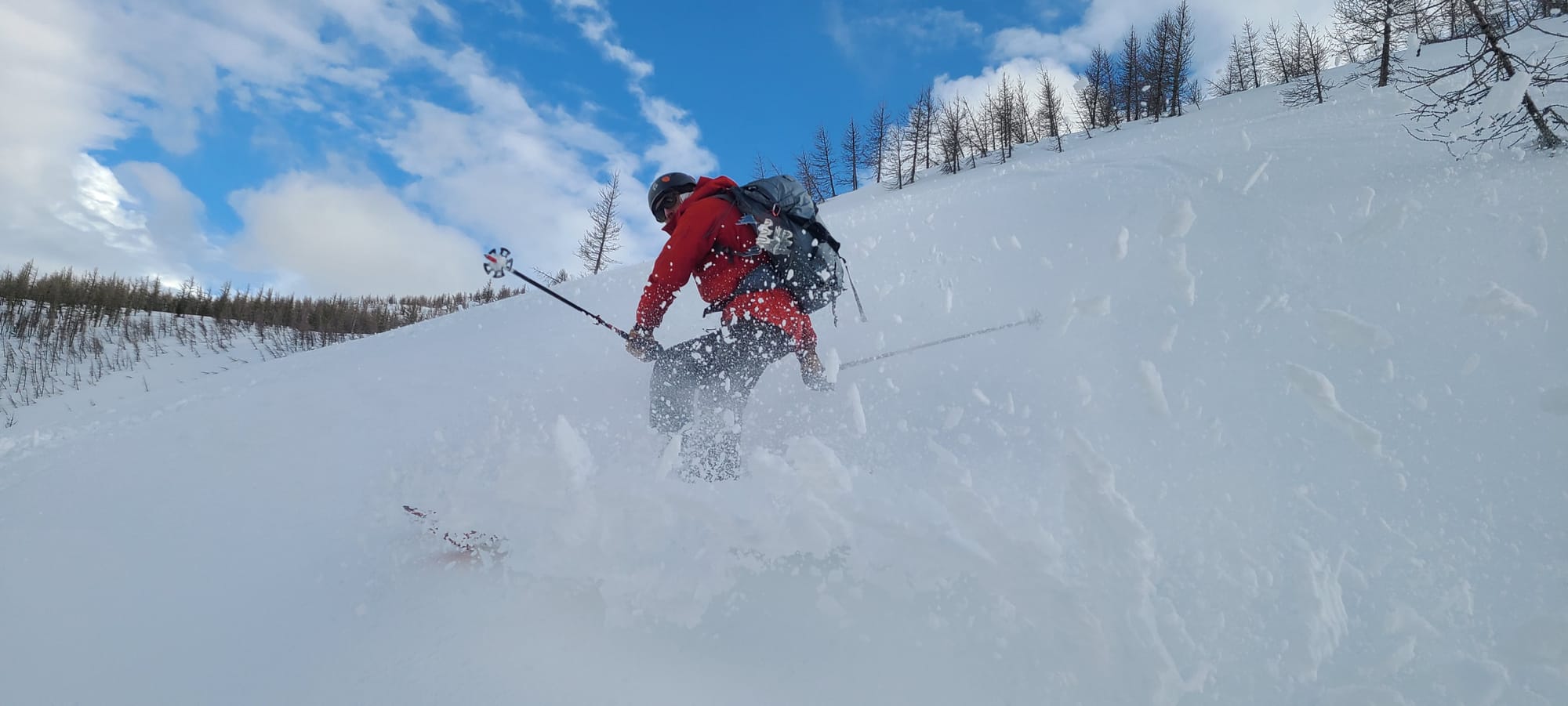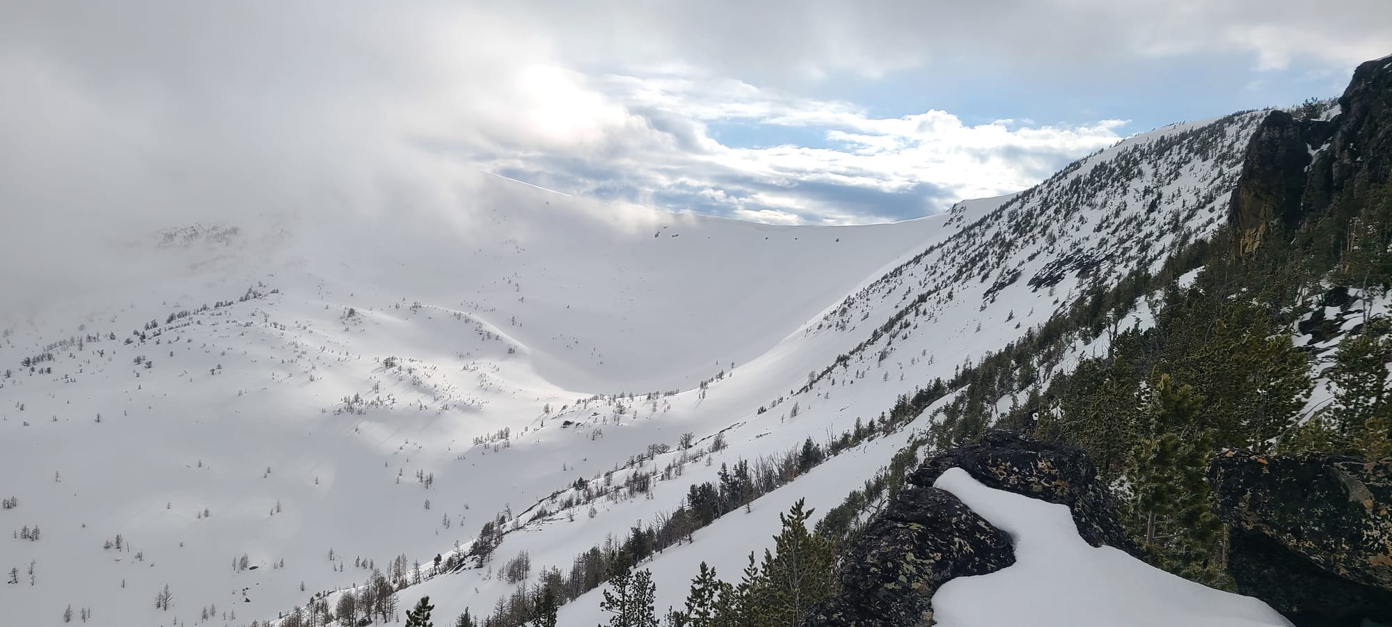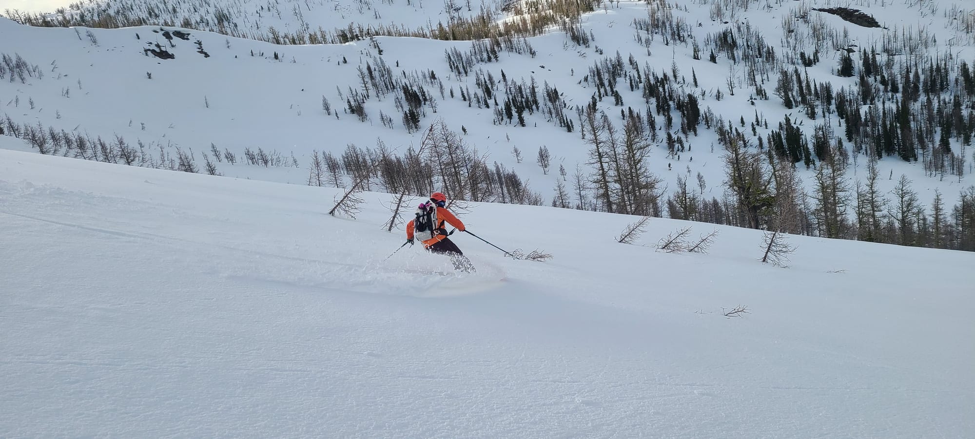 With energy still in the tank and fresh snow still clinging to high aspects, we skinned up the south-facing shoulder of Lolo Peak—quickly dubbed “The Holy Shoulder.” A few good laps, a hearty dinner, and some whisky passed around sealed the deal on a solid first day.