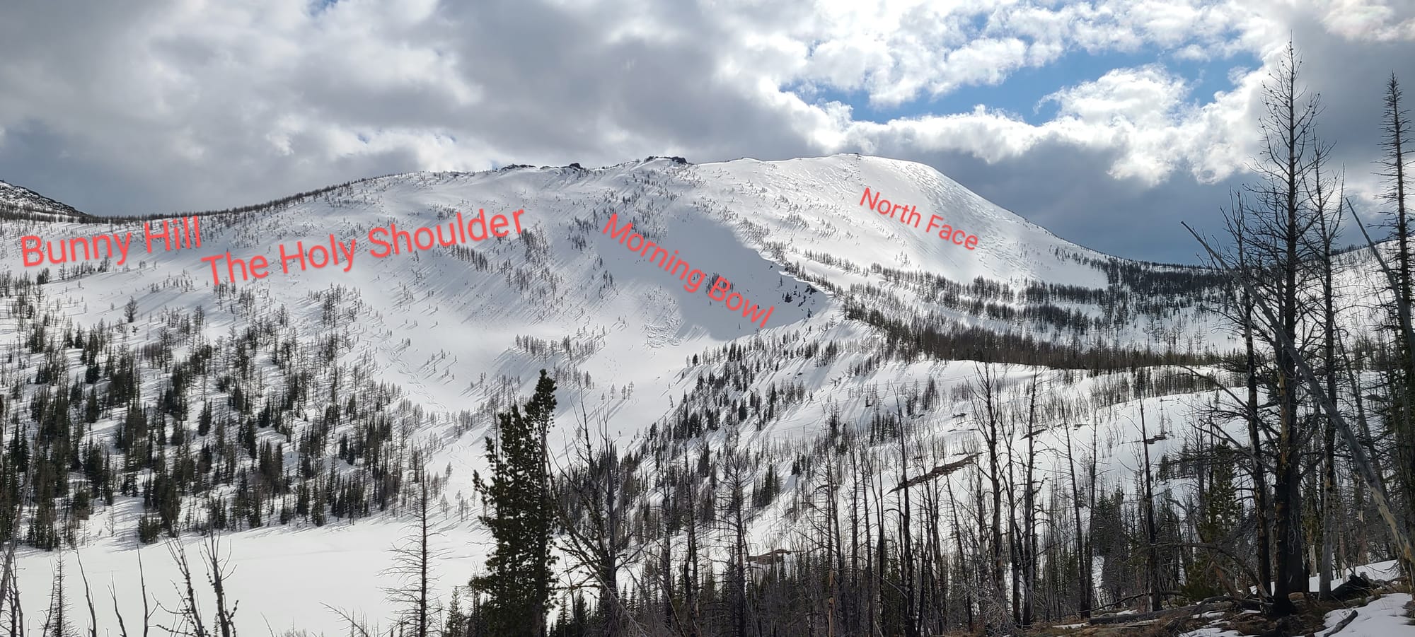 Overnight temps didn’t quite freeze solid, and the snowpack reflected it. Mark and I got one final lap on the Holy Shoulder before we packed up camp and headed out. In just four days, the snow line had climbed to 7,300 feet—about 300 feet of melt, a stark reminder of the season’s end.