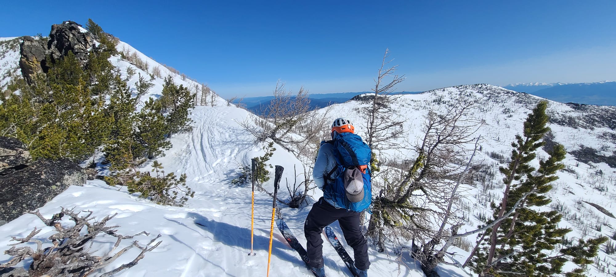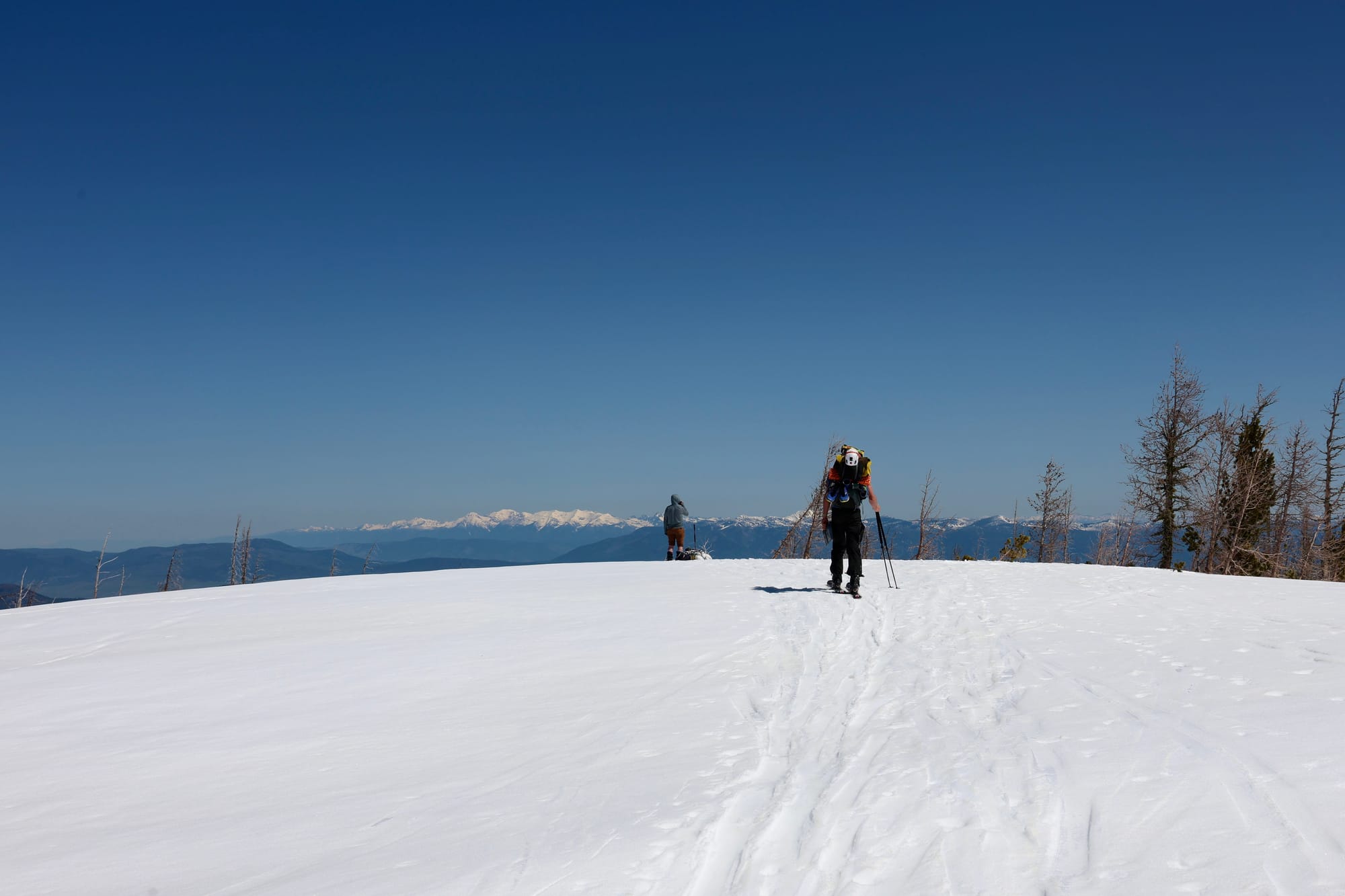 We kicked off Friday with a lap on the Holy Shoulder to warm up, then shifted our sights to the more shaded north side. After a visit to the north (but not true) summit of Lolo Peak, we spent the morning carving big, confident turns into a north face that surprised us with its quality. Even this late in the season, the snow held remarkably well.