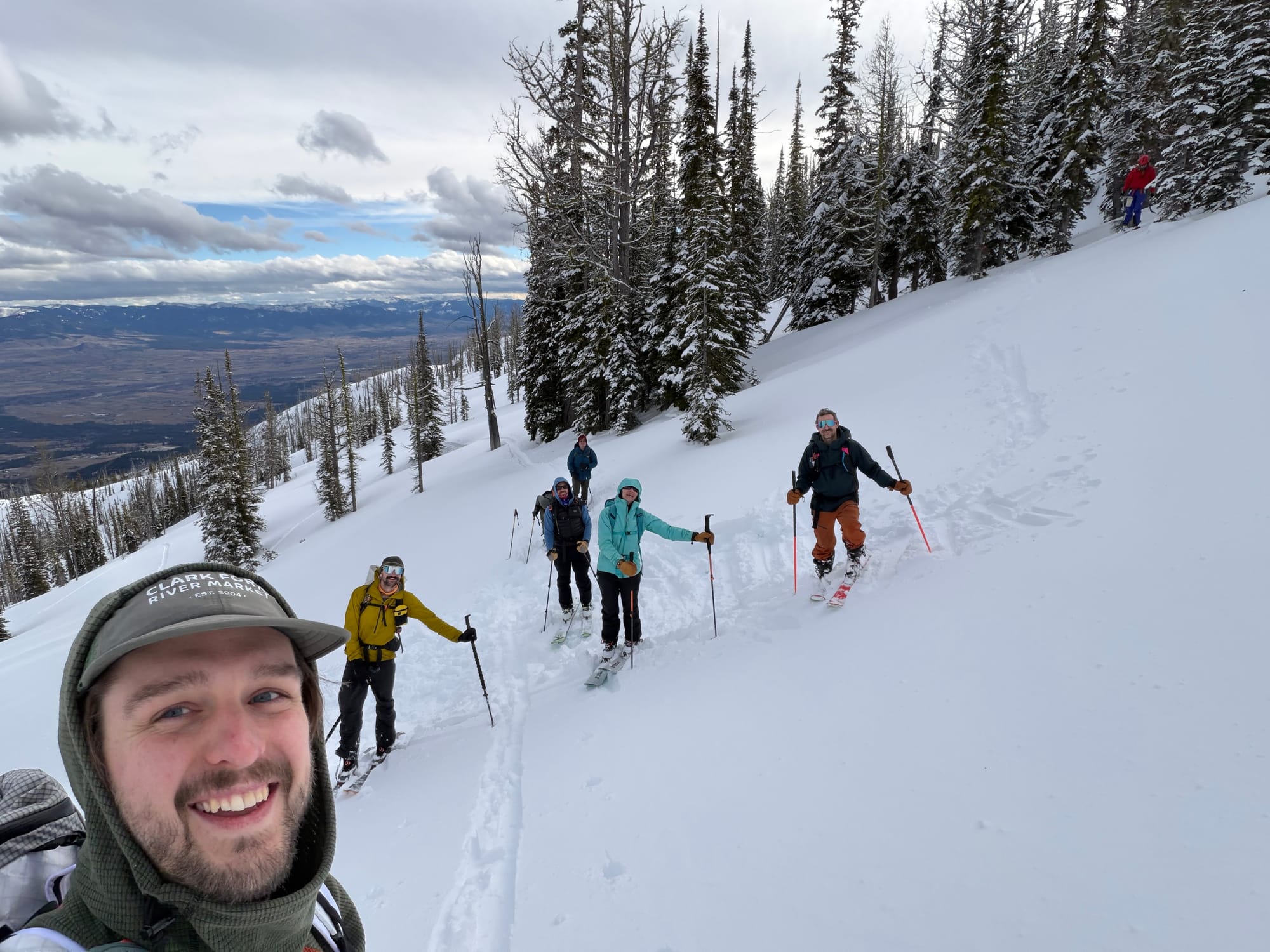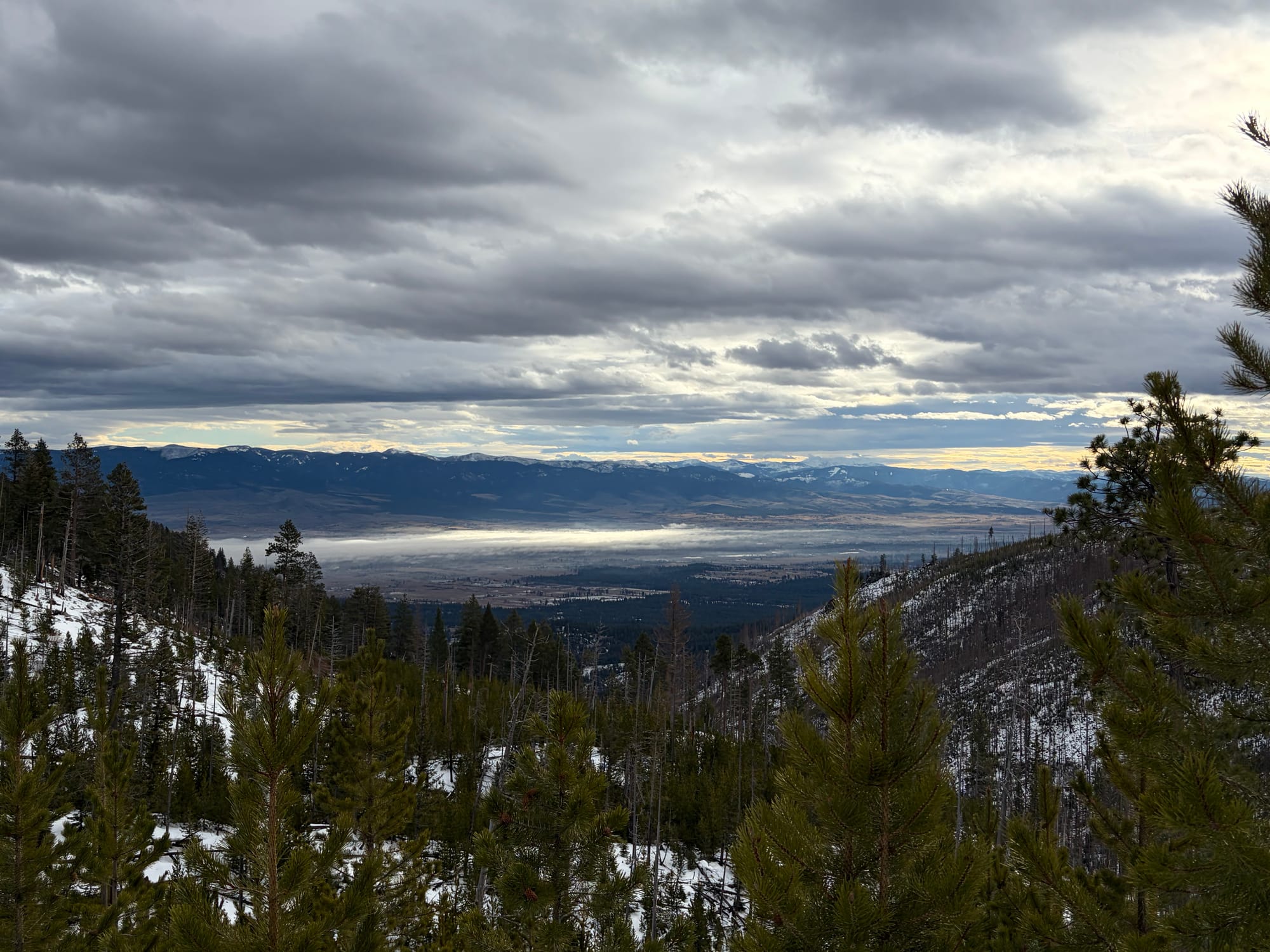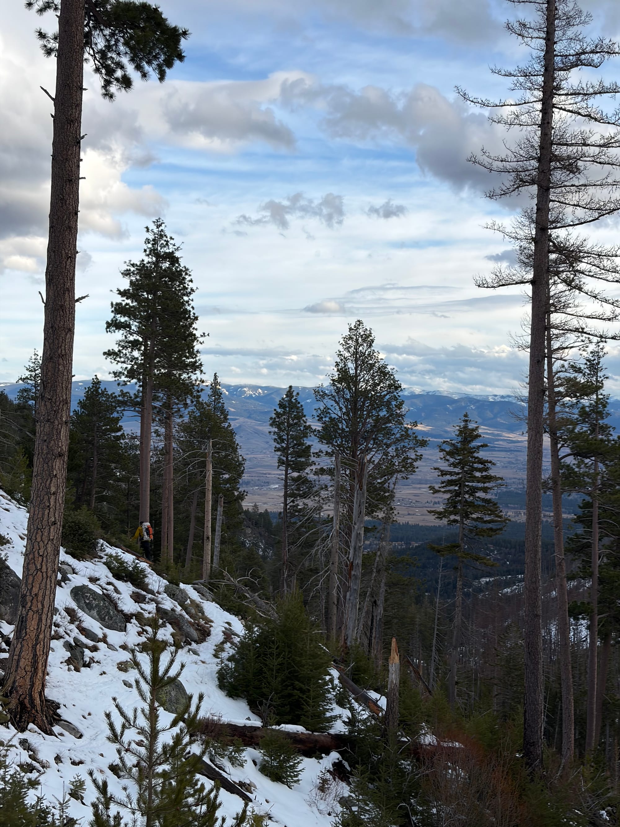 Initial plans were to start the New Year off at Lolo Pass, but balmy January temps pushed us to seek higher elevation at Gash Creek. We carpooled from the Missoula fog to the Lower Gash Creek trailhead and started up the trail on foot around 9:45am. We made the switch to skis once we met the road near the upper trailhead and only had to take them off once to skip an early bare patch before being able to complete our ascent for the day on skins.