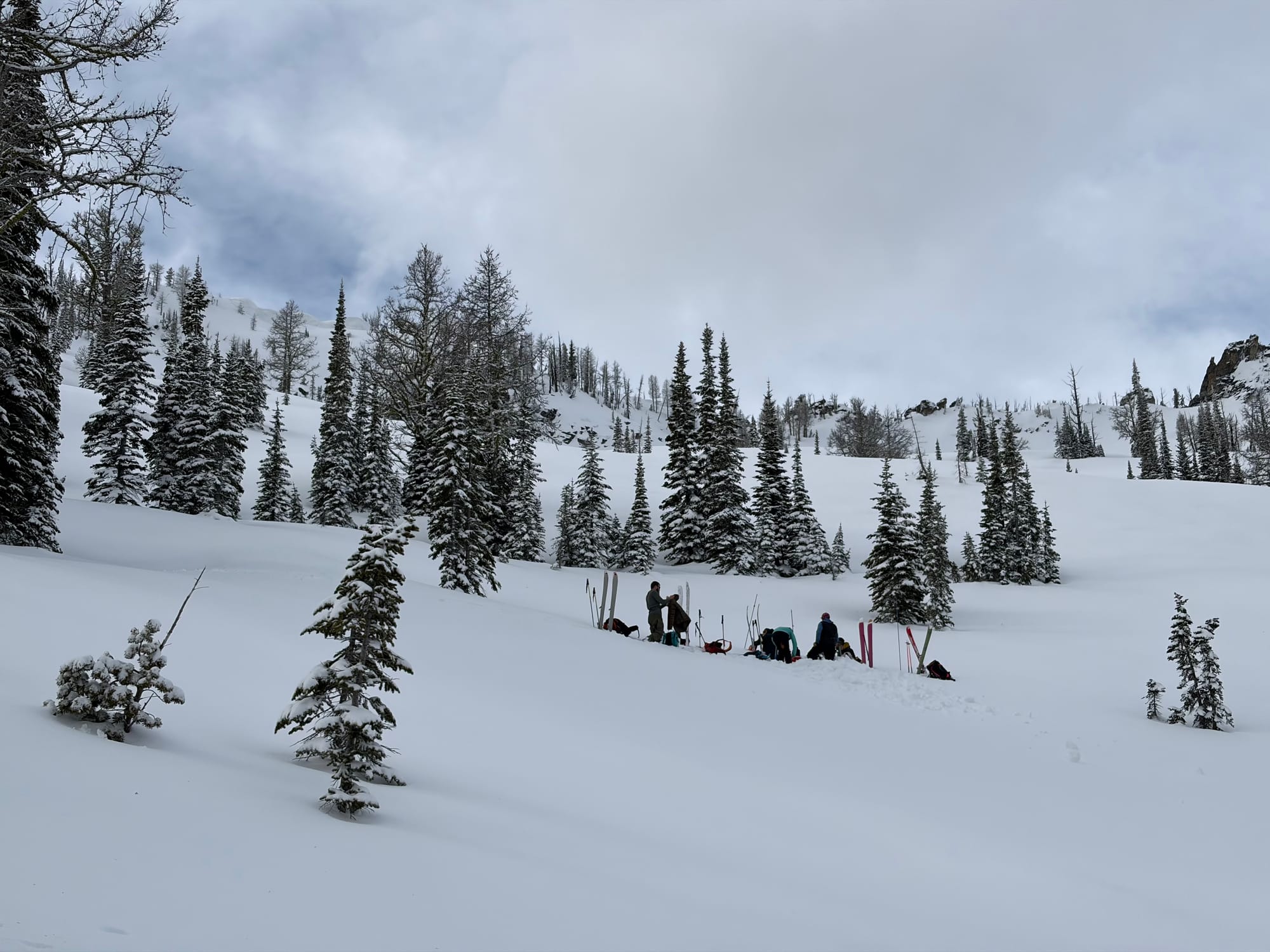 After a bit of discussion, the Center?/Main?/East?/Mini? Gash bowl (Gash lingo is a bit of a mystery to me) became our objective for the day as it looked nicely filled in, and was known to Francis as good ski with manageable terrain. Intermittent sun and a steady breeze kept temps and snow conditions pleasant throughout the day. As we made our way up to the bowl, the snow quality kept improving and our optimism for good skiing grew. At about 7600’ we dug a pit to see what condition the snowpack was in, and saw perhaps a bit more reactivity than we were expecting. While our plan was always to stick to low-angle terrain, this was an interesting look into the complex snowpack this early “winter” is throwing at us.