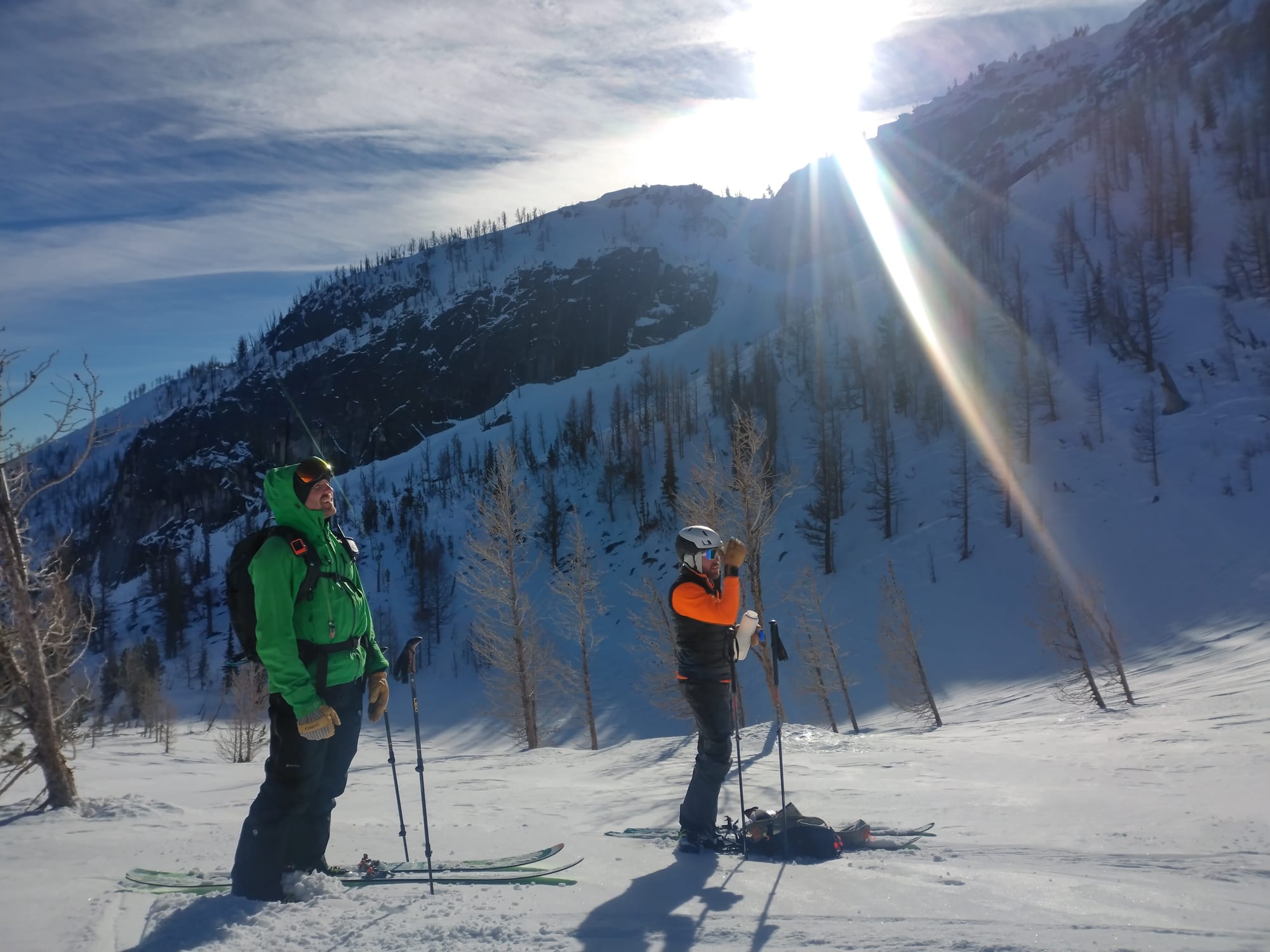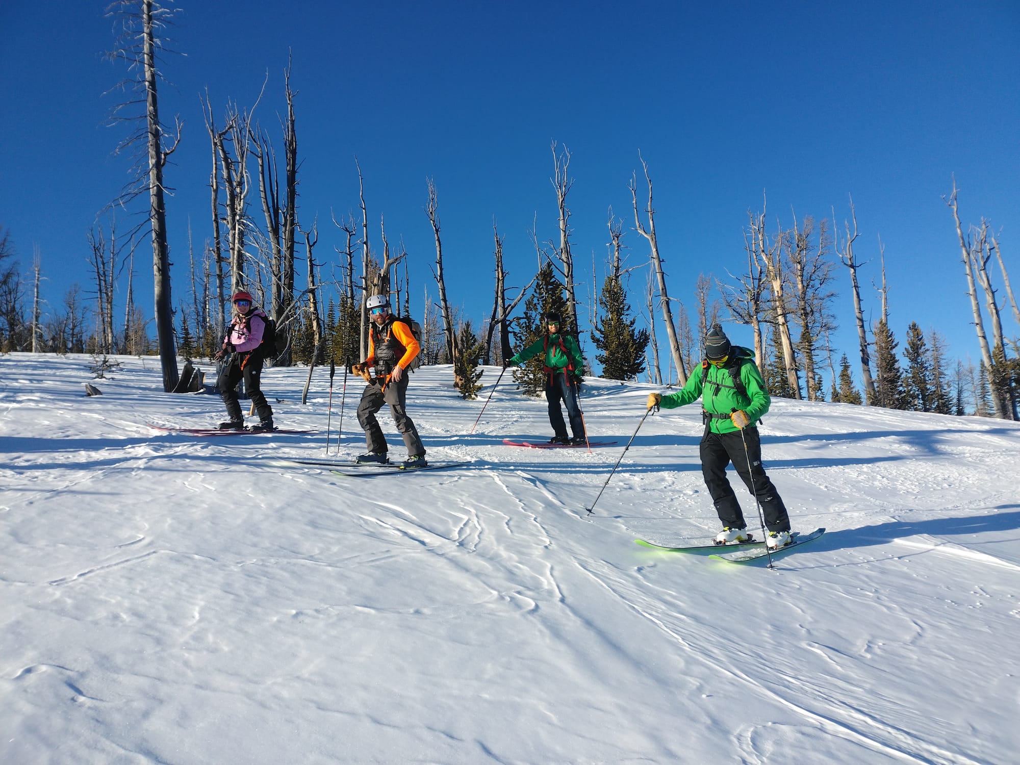 With a warm high-pressure system parked over the Bitterroots for the better part of a week, it was no surprise that this trip saw higher-than-usual attrition leading up to the weekend. Despite warm temperatures and a lack of recent snowfall, those of us who remained committed set out in search of good skiing.