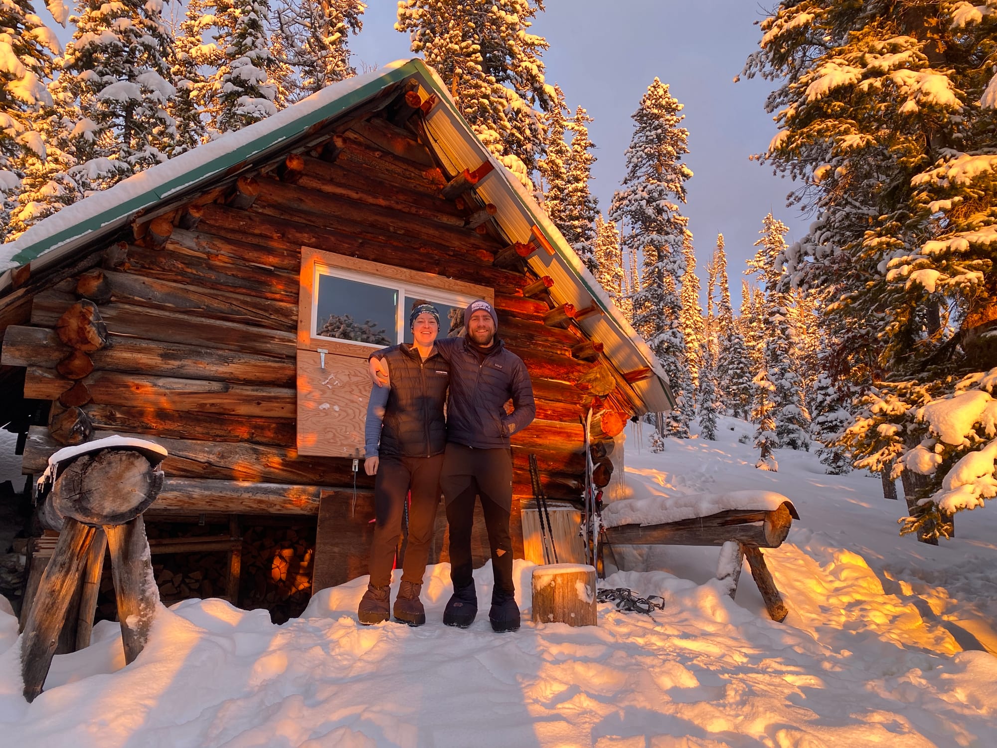 Jeff was first to arrive on Friday and even got a lap in up high. Elizabeth and Forest arrived at 6:30- Megan an hour later. Q came up first thing Saturday morning and Erin later that afternoon. We skied both the “north” an “south” bowls (east facing) several times each and found good snow everywhere. Lots of fun and smiles! Cabin life was its usual fun time with good conversation, eating, drinking, music, etc.