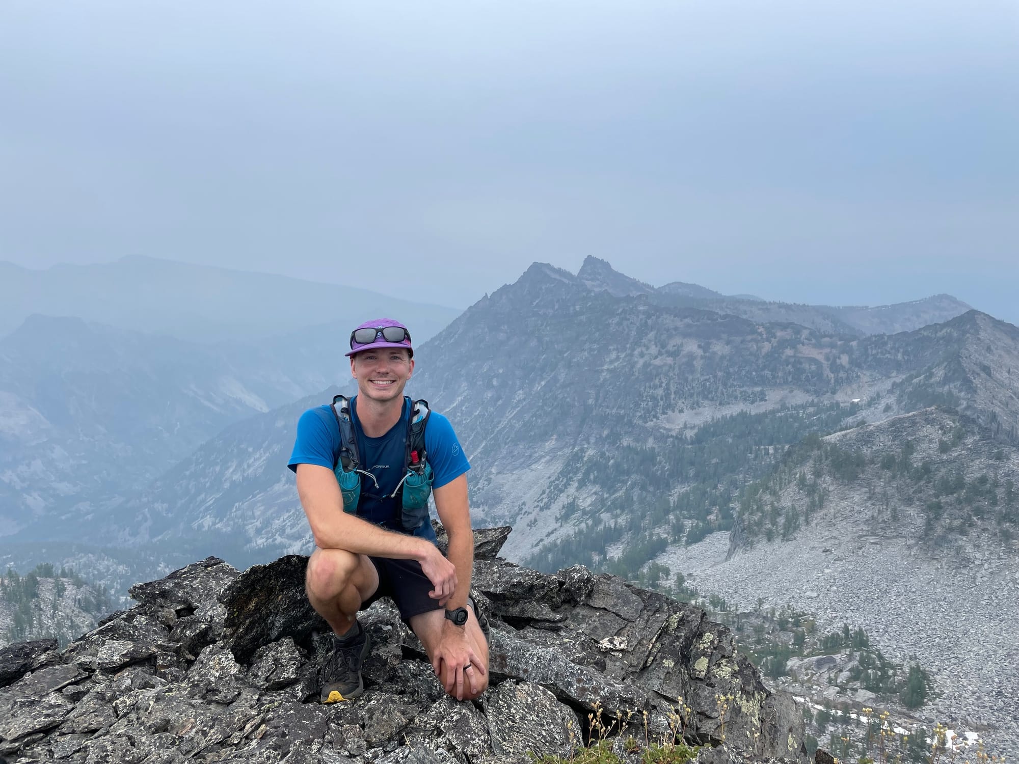 We took our summit photos, and began the long, loose rock slog back down to the trail to catch up with Laurel. Back down near the trail, we had a hell of a time finding it, crossing over it multiple times in a futile attempt, while shouting back and forth with Laurel to get our bearings. Then it was just an 8.5 mile trail jog/walk back to the trailhead, in which legs were pretty much toast at the end.